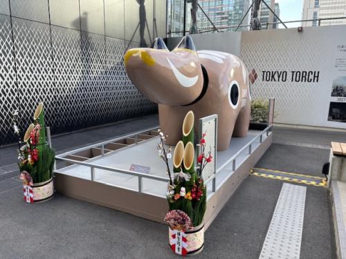 ・巨大赤ベコ付近に「門松」の装飾を実施。