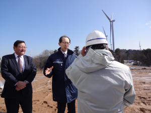 内堀知事が葛尾村を訪問し、「葛尾風力発電所」を視察しました。