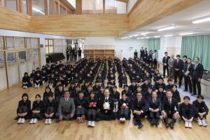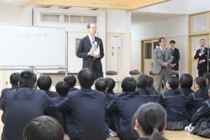 知事は、浅川中学校の全校生徒に対して「失敗は悪いことではない。失敗を恐れず、ファーストペンギンのように、色んなことにチャレンジしていってほしい」と話しました。