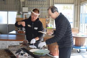 知事は、「美味しい魚を食べて元気になれるよう、これからも頑張ってください。すばらしい味でした。」等と話しました。