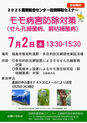 モモ(せん孔細菌病、胴枯細菌病)防除対策