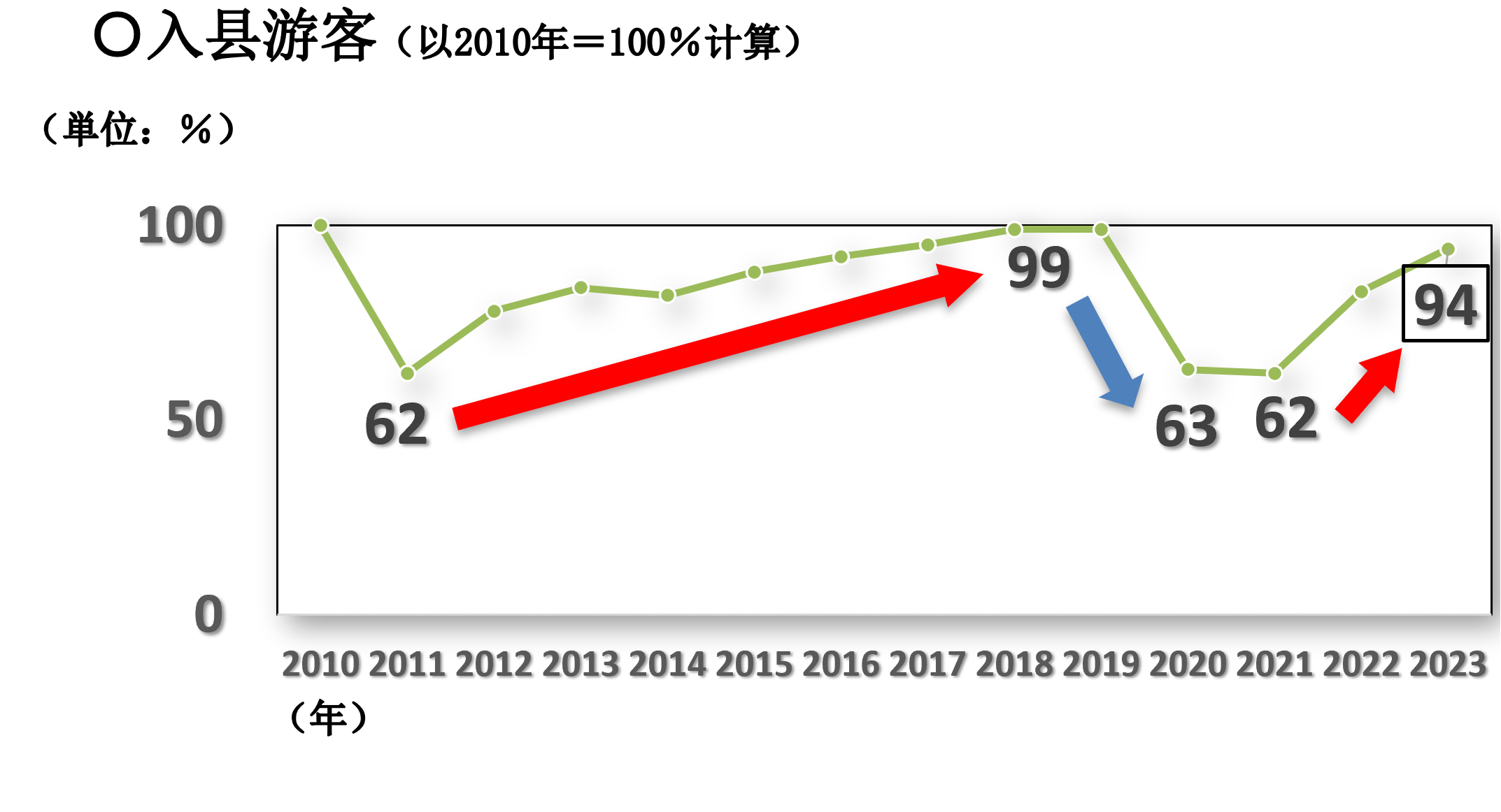 - 地震后入县游客的接待人数大幅下降,但到2019年已有所恢复。此后,接待人数虽因新冠疫情的影响而跌落至地震刚发生后的水准,但2023年再度呈现回升趋势