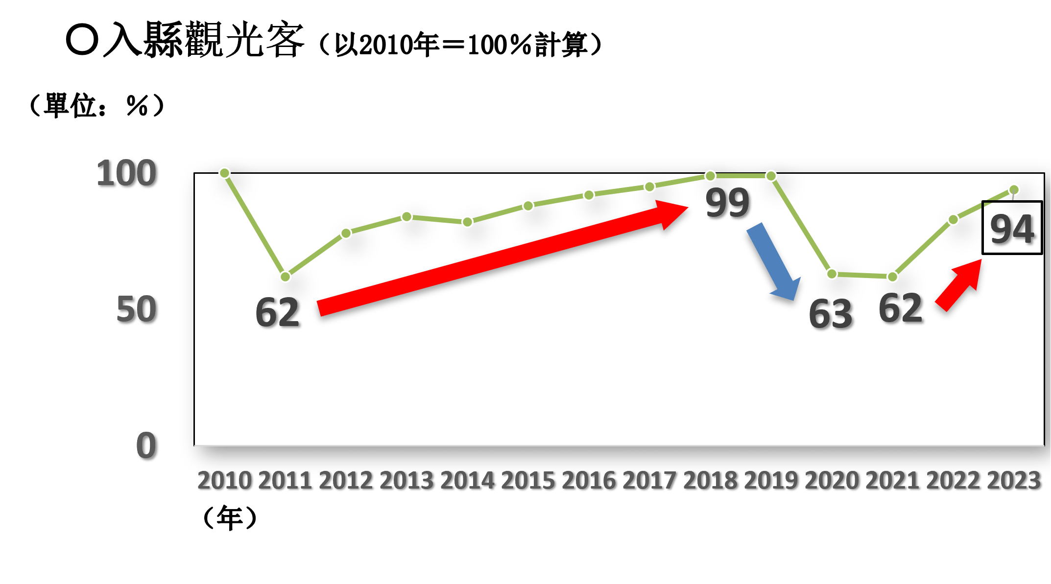 - 新冠肺炎以後,觀光客和教育旅行的接待人數有恢復的傾向。
