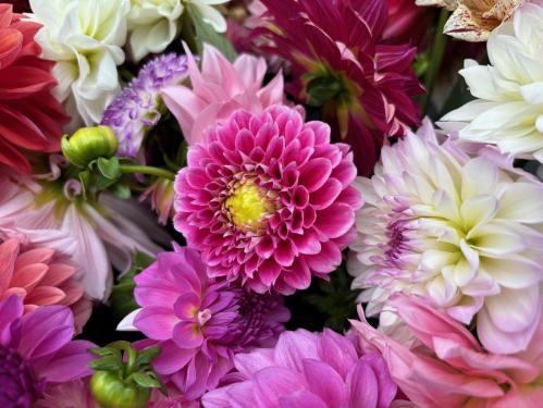 塙町産ダリア(メダリスト)                     桃や梨などの県産品販売
