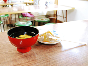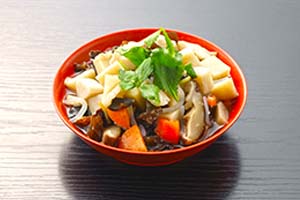 こづゆ (会津若松市) こづゆは、主に江戸期に北前船がもたらした海産物と会津古来の地場産品の組合せによりできあがった料理です。当時貴重な海産物を保存加工し独自につくりあげた、いわば会津を代表する郷土料理といえるもので、まさに会津の先人が風土に根差した当地固有の料理として創作したものです。その歴史は、江戸後期会津藩八代藩主松平容敬公の参勤交代の折、食べられた『重』という料理がルーツとされます。元々冬期間のお祝い膳に出されていましたが、現在は冠婚葬祭やお正月など特別な日に欠かせないおもてなし料理となっています。伝統工芸会津塗の「大平」という椀に盛られ、「手塩皿」という朱塗りの小皿に分けて食べます。 |