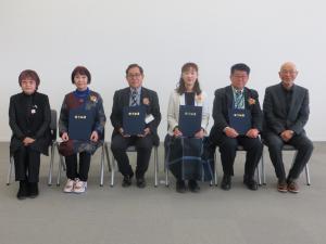 (写真は左から、青木会長、木村貞子さん、遠藤昭三さん、岩本美智子さん、石塚洋悦さん、大谷副会長)