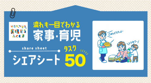 男性の家事・育児への参画を促進するため、家庭内における理想的なシェアについてパートナーと話し合うコミュニケーションツールとして「家事・育児シェアシート」を作成しましたので、ぜひご活用ください。