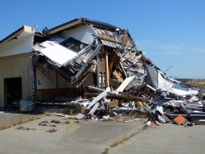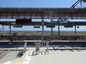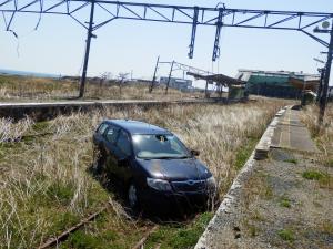 We travelled to Tomioka Station. It was quiet, almost as if time had stopped. The crumbling platform. A car swept onto the train tracks. Collapsed buildings.