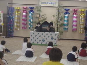 内容:環境に関する紙芝居の読み聞かせや、エコな思いを書いた短冊の飾りつけなどの七夕行事を通じて、ふくしまの森林(もり)や地球環境を想うやさしい心を育むものです。