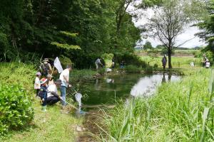レンゴー福島矢吹工場の敷地内に造成したビオトープ。周辺は農地や雑木林に囲まれ、これまでに動植物が約345種確認されています(2011~2023年調査)。また、ビオトープでの環境イベントの開催を行い、環境意識の醸成にも取り組んでいます。