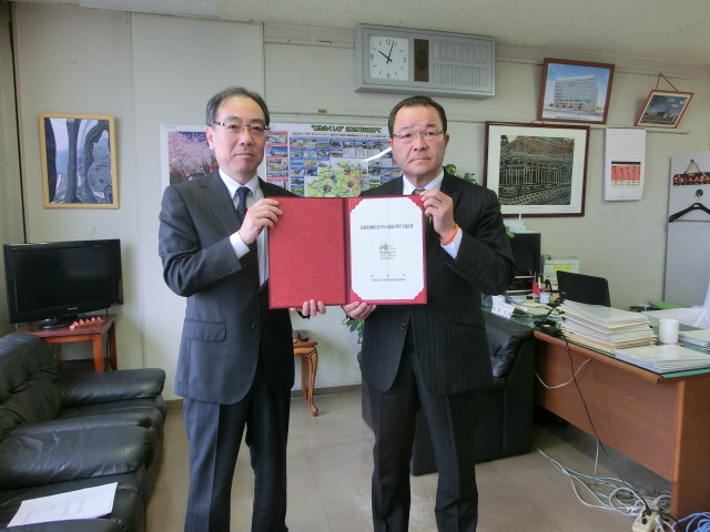 協定締結式の様子。右が福島県医薬品配置協会佐久間会長、左が福島県保健福祉部佐藤部長。