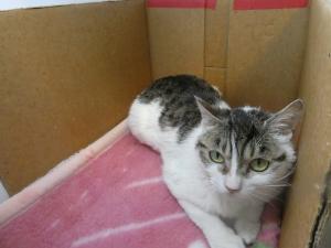 少し気分屋なところがあるオス猫です。大きな体を丸くしてこちらを見つめてくるので、そっとなでていくと、のどをゴロゴロと鳴らしてスリスリと甘えてきます。その反面、爪を立ててくることが時々あります。縄張り意識が強く、ケンカっ早いオス猫らしい性格が強いのかもしれません。センターに来てから去勢済みなので、これからは甘えんぼの面がフルに出てくることが期待できますので、御理解いただける方をお待ちしてます。 |