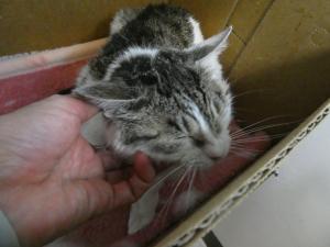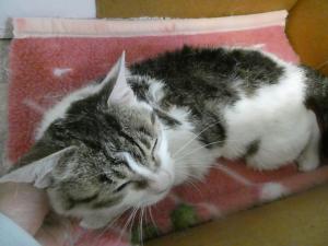 初めての人には緊張しますが、なでていくとすぐにのどをゴロゴロ鳴らしてくる甘えんぼです。右側犬歯の不正咬合がありますが、現在はごはんをしっかり食べて元気に過ごしています。また当初より皮膚が乾燥気味で、フケを多く認めたため、薬浴等で処置を行っています。今後、少しケアが必要かもしれませんが、性格は穏やかで、とても優しい猫です。御理解いただける方からの御連絡をお待ちしてます。 |