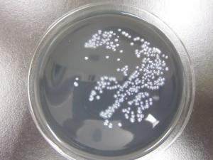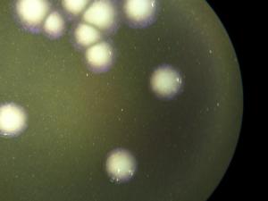 培地上のレジオネラ属菌 実体顕微鏡で観察したレジオネラ属菌
