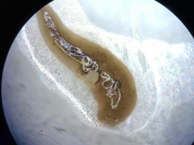 顕微鏡で観察・同定実習 顕微鏡で観察したナミウズムシ(プラナリア)