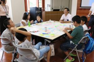 「自分たちが考えたお店を運営して商店街にお客さんを呼ぶ」、「顔出し看板を作る」などのアイディアから、子どもたちにとっての理想の街の実現、顔出しパネルスタンプラリーの開催、商店街のテーマソング制作を行います。