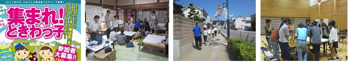平成28年7月30日(土曜日)、8月6日(土曜日)、27日(土曜日)、28日(日曜日)に、田村市の常葉町中央通り商店街で行われたワークショップに参加し、市内のこどもたちと一丸となり、商店街の賑わいを生み出すための取り組みを検討しました。