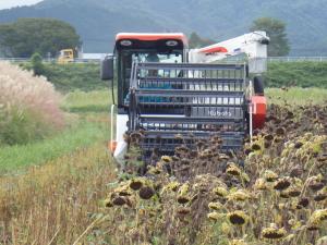 現地実証の取り組みについて 今後の取り組みにも期待を ヒマワリは収穫後、乾燥調製搾油し、