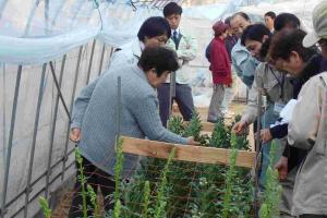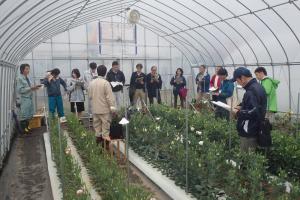 リンドウの実証栽培について リンドウの生育状況に関心を寄せる皆さん 定植一年目でも採花可能な品種も