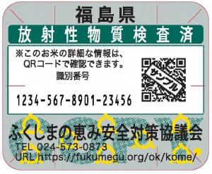 安全性が確認された玄米を使用した精米であることを消費者に伝える精米袋用のラベルです。また、小分けされた玄米袋にも貼られています。 |