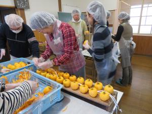 | ○JAのあんぽ柿加工施設見学 衛生的な環境で加工されているあんぽ柿の生産工程や全量を非破壊検査する状況などを見学しました。 | |