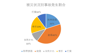 被災状況別では、機械や鎌による外傷又は切傷、高いところからの転落、転倒