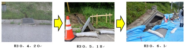 | ◆県道の被災状況 | ◆県道側溝枡の被災状況 |