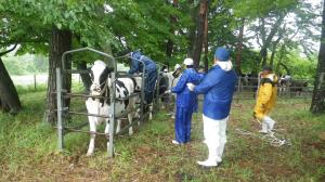 放牧開始から約3週間が経過した6月20日に放牧中の牛の健康状態を確認するため会津家畜保健衛生所を中心として放牧衛生検査が実施されました。