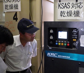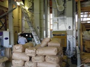 検討会では、収量・食味センサーを搭載したコンバインにより収穫された籾が、水分やタンパク含有率にもとづき仕分乾燥されるシステムの実演と意見交換を行いました。