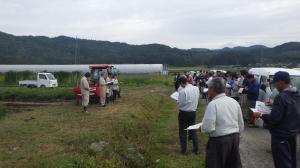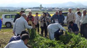 当農業普及所は、落花生栽培における作業の省力・軽労化を目的に、西会津町松尾集落に現地実証ほを設置し、機械化技術の実証し、に向けた検討を行なっています。