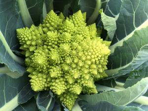「ロマネスコ」は、カリフラワーの一種で、花蕾がクリスマスツリーや恐竜の背中のような、ボコボコとしたユニークな形をしています。