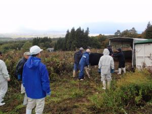 牧野では8頭の放牧牛達が、名残惜しそうに広大な放牧地を後にしました。
