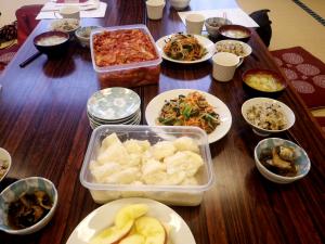 研修会では、餅米を使用した混ぜご飯、サンマの煮付け、ナムル、味噌汁をつくり、各会員から料理についてのこだわりや調理上の注意点等についての説明がなされましたが、特に、餅米を蒸かす際の水分調節や、サンマの臭み取り等について参考になったようでした。