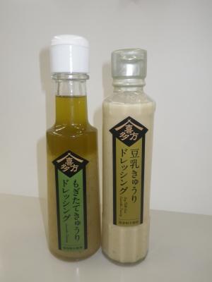 商品化されたドレッシングは、豆乳ベースのクリーミーなまろやかさが特徴の「豆乳きゅうりドレッシング」と、スパイシーでよりキュウリの存在が感じられる「もぎたてきゅうりドレッシング」の2種類です。