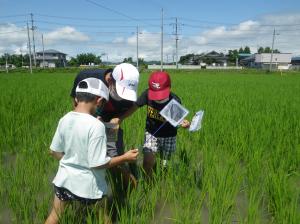 自然と調和した農業生産活動を目的に、環境負荷の少ない農業や生物多様性について学ぶため喜多方市内の小学生を対象とした田んぼの生き物調査が、7月3日(土)に同市の水田で開催されました。
