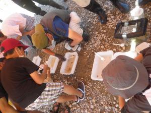 サンプリングしに行く様子 図鑑で生き物を確認