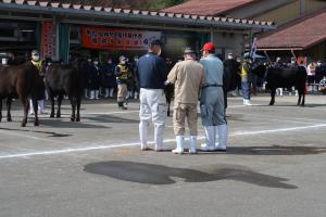 審査は、全会津肉用牛共進会と同様の月齢等により5つの審査区でそれぞれ優等賞1席、同2席等の順位が決められ、審査の最後には各区の優等賞1席の牛を比較し、名誉賞が決定されました。