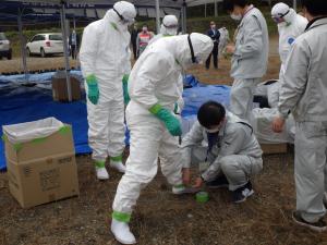 鳥インフルエンザは、発生しないことが一番ですが、万が一発生した場合には、疑似患畜確定後24時間以内に殺処分、72時間以内には埋却を完了させなければなりません。このため、今回のような演習を日頃から繰り返し行っておくことが非常に大切であると感じました。