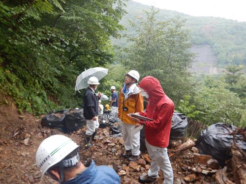 足場の安全な設置等、平地の現場では想定できない急傾斜特有の設備・装備について確認することができました。