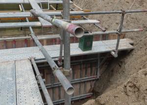 掘削法面に防護網設置(良) パイプ先端の保護キャップなし(要改善)