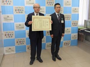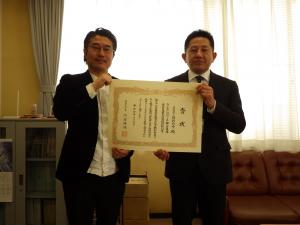 塙町役場で、県南建設事務所長より表彰状及び副賞を授与しました。