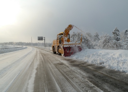 積雪が5から10cm以上で柔軟に除雪隊が出動し除雪、または路面凍結時等に凍結防止剤散布を行いますが、地吹雪により視界が阻害され通行に支障がある場合などは、通行止めを余儀なくされることもあります。