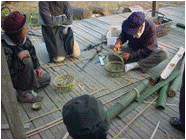 左から、野鍛冶、竹細工、紙すきです。