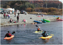鮫川でカヌー下り