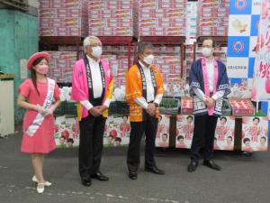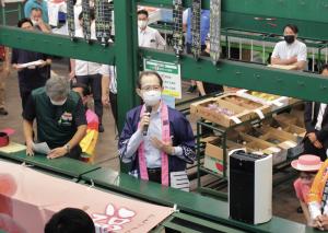 内堀知事は、大果大阪青果や関係者に対し、日頃から福島県産青果物の流通・販売に御尽力いただいていることへの感謝をお伝えするとともに、「会場の皆さんには、福島の「旬」のおいしさを全国の消費者の皆さんに届けていただき、より多くの方々が福島の恵みを味わい、笑顔になっていただけるよう、変わらぬ御支援、御協力をお願い申し上げます。」と話しました。