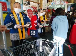 内堀知事がロサンゼルスを訪問し、 Tokyo Central Gardena (トウキョウ セントラル ガーデナ店)において県産米「天のつぶ」の試食を提供し、安全性やおいしさを発信しました。