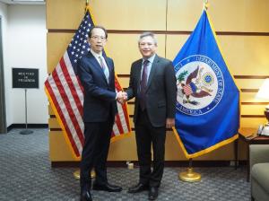 内堀知事がアメリカ国務省を表敬訪問し、震災以降の復興に向けたアメリカからの支援や、令和3年に実現した輸入規制撤廃に向けた働きかけに対する感謝をお伝えしました。