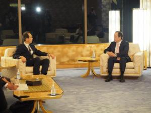 内堀知事が駐米日本国特命全権大使を表敬訪問し、今回の大使公邸における「福島の未来を発信する」セミナー”Future of Fukushima”及びレセプション「Fukushimaの食と農の夕べ」開催に際するご協力や、令和3年9月のアメリカにおける日本産食品の輸入規制撤廃に際するご尽力など、これまでの復興に対する大使館のご支援に対する感謝をお伝えしました。