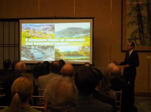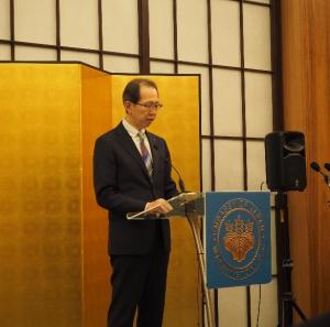 ワシントンD.C.日米協会が開催する「さくら祭り~Japanese Street Festival~」に米国ワシントンD.C.福島県人会がブース出展を行ったことなどに触れ、本県と同協会の関わりについて紹介するとともに、同協会が平成24年4月、原発事故の影響により仮設住宅への避難を余儀なくされていた、山木屋太鼓クラブ(川俣町)の子供たちをさくら祭りに招待したことへの感謝をお伝えしました。