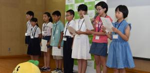 8月3日に福島市において、「県庁に みんなの声を 届けよう!」プロジェクトを開催しました。県内の小学5・6年生31名が参加し、「ふくしまの未来の学校・農業・商工業・まちづくり」をテーマとした4グループに分かれ、こども未来会議を開きました。参加した児童は、しっかりと自分の考えを言葉で表現し、友達の意見にも耳を傾け、活発に意見交換をしていました。グループごとにまとめた内容を、参加者全員が、内堀知事や鈴木教育長・教育委員の前で発表しました。少し緊張しているようにも見えましたが、みんな堂々と発表していました。本県のよりよい未来を考えたアイデアあふれる様々な発想に感心しました。